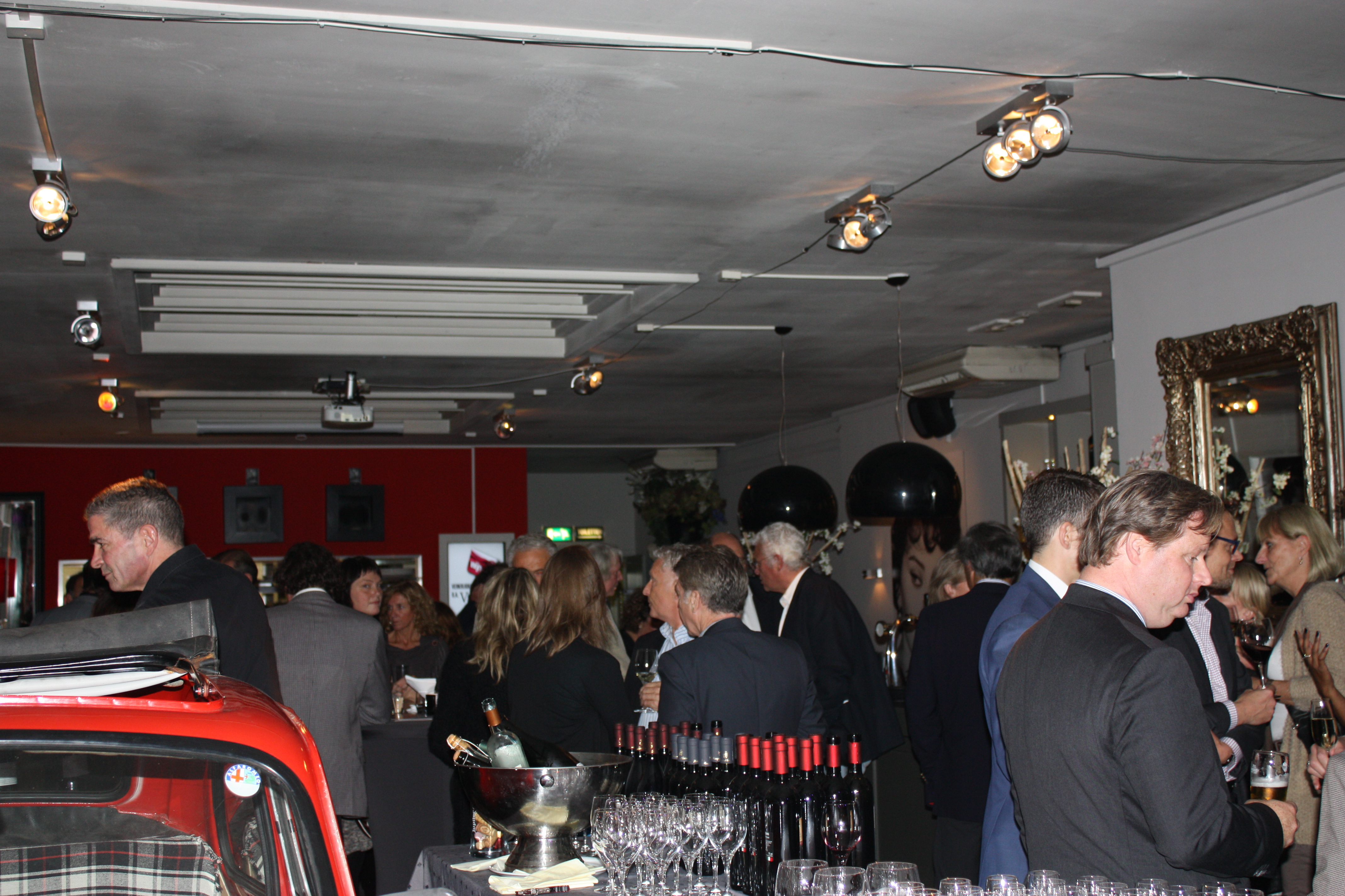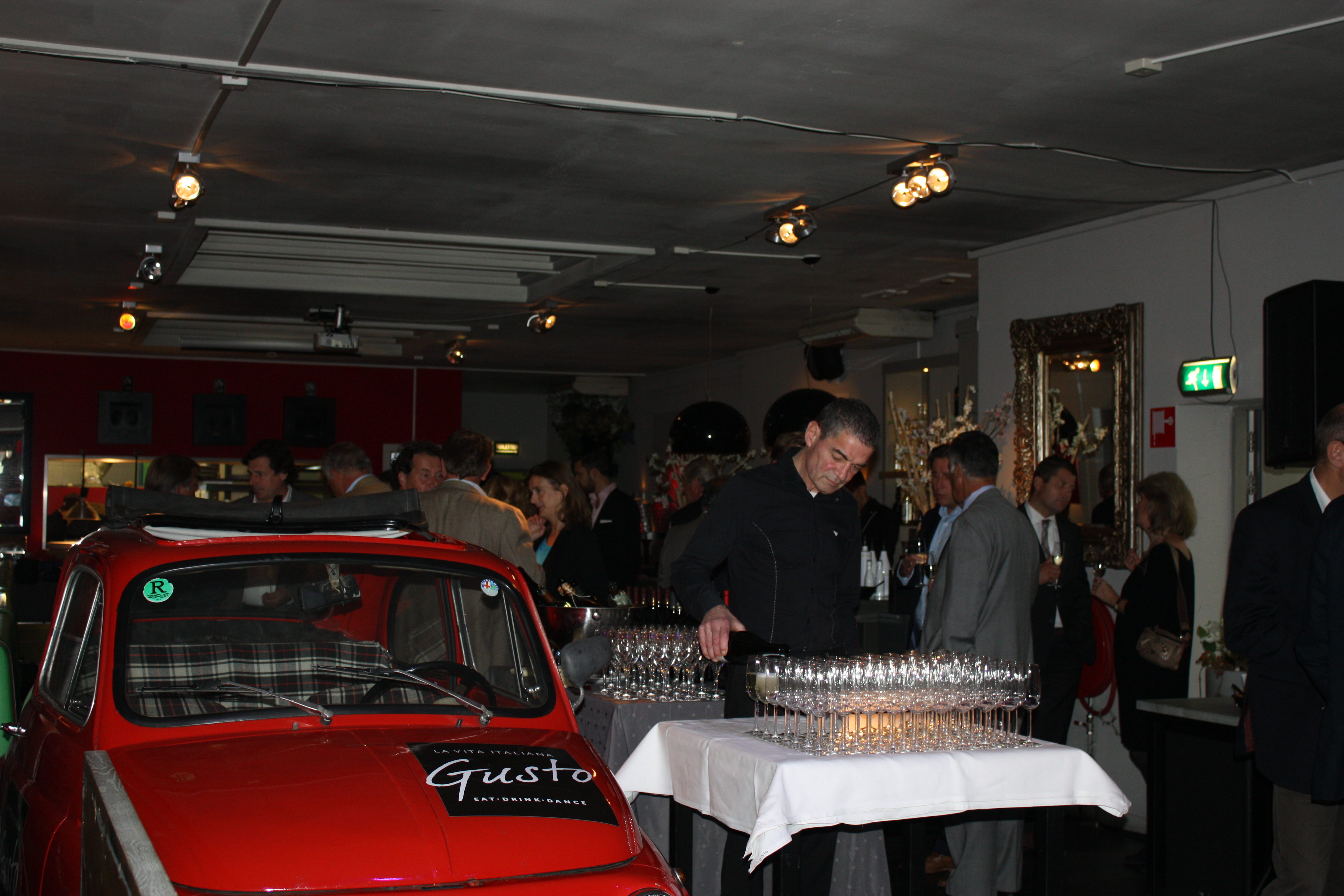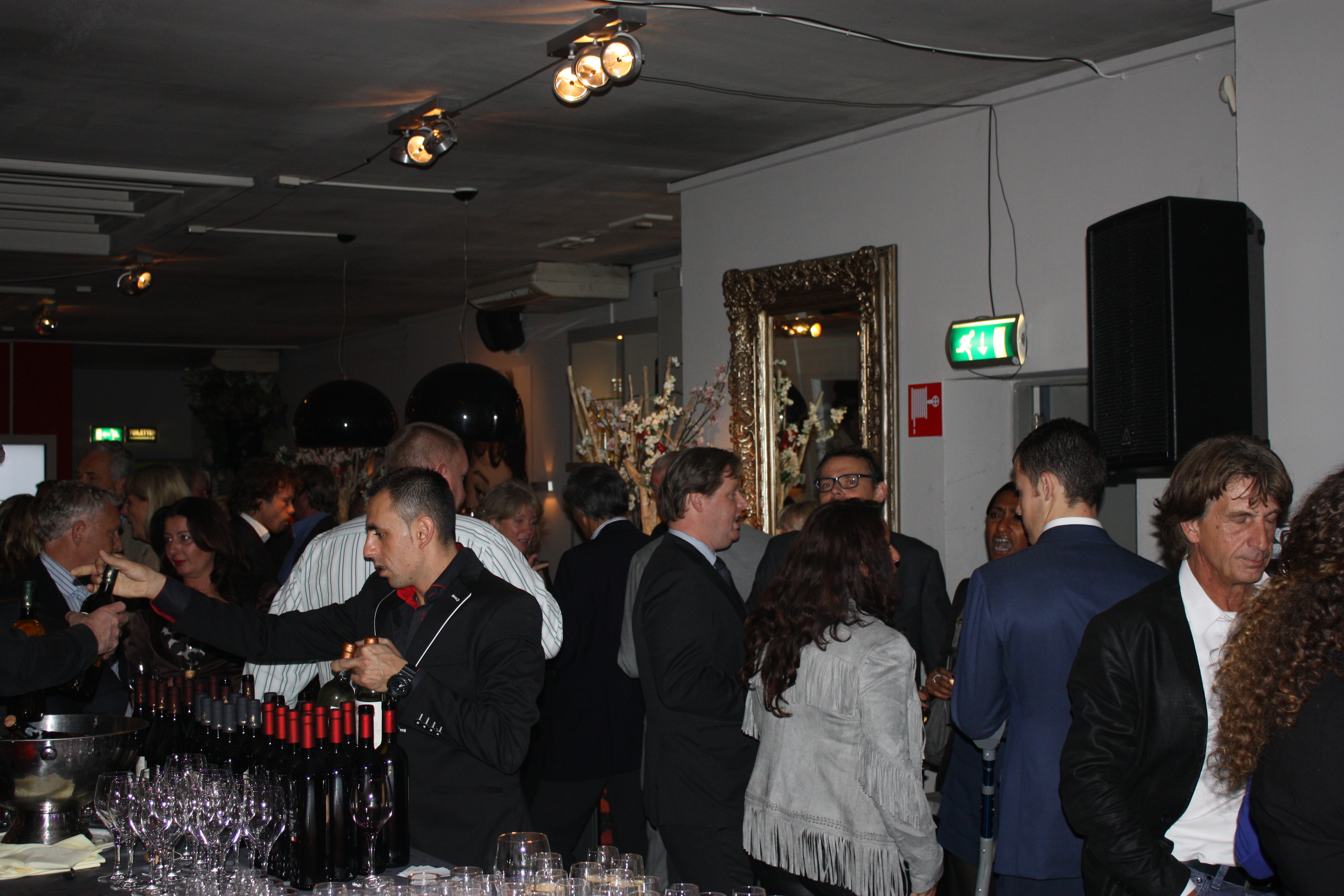 Zowel binnen als buiten wordt er hard genetwerkt en genoten van heerlijke Italiaanse wijnen. De fotograaf loopt rond en iedereen poseert gracieus en slaat spontaan de armen om degene die ernaast staat. Het personeel van Gusto blijft met een glimlach de groep verblijden met warme hapjes. Op advies van de wijnsommelier geniet iedereen van karakteristieke wijnen, maar er worden vooral business kaarten uitgewisseld en bijgepraat over de nieuwste ontwikkelingen binnen het ondernemerschap van de regio Haaglanden. Rob Truijens, directeur Business Haaglanden en Business Amsterdam, bedankt iedereen voor hun komst en herinnert de genodigden dat de Business Beurs Haaglanden binnenkort plaatsvindt in het Kyocera stadion, op 13 november. Na dit intermezzo wisselen de borrelaars van gesprekspartner en drankjes en hervatten de aanwezigen de conversaties en blijft het nog lang gezellig. De meeste gasten blijven na de borrel dineren bij Gusto en zetten de Italiaanse stijl voort.